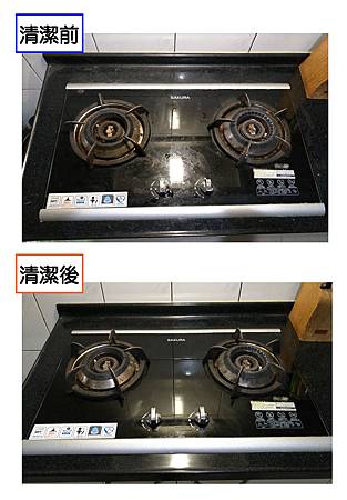 再來清潔洗手檯和瓦斯爐,看起來也乾淨不少,擦拭後也滿快就乾了